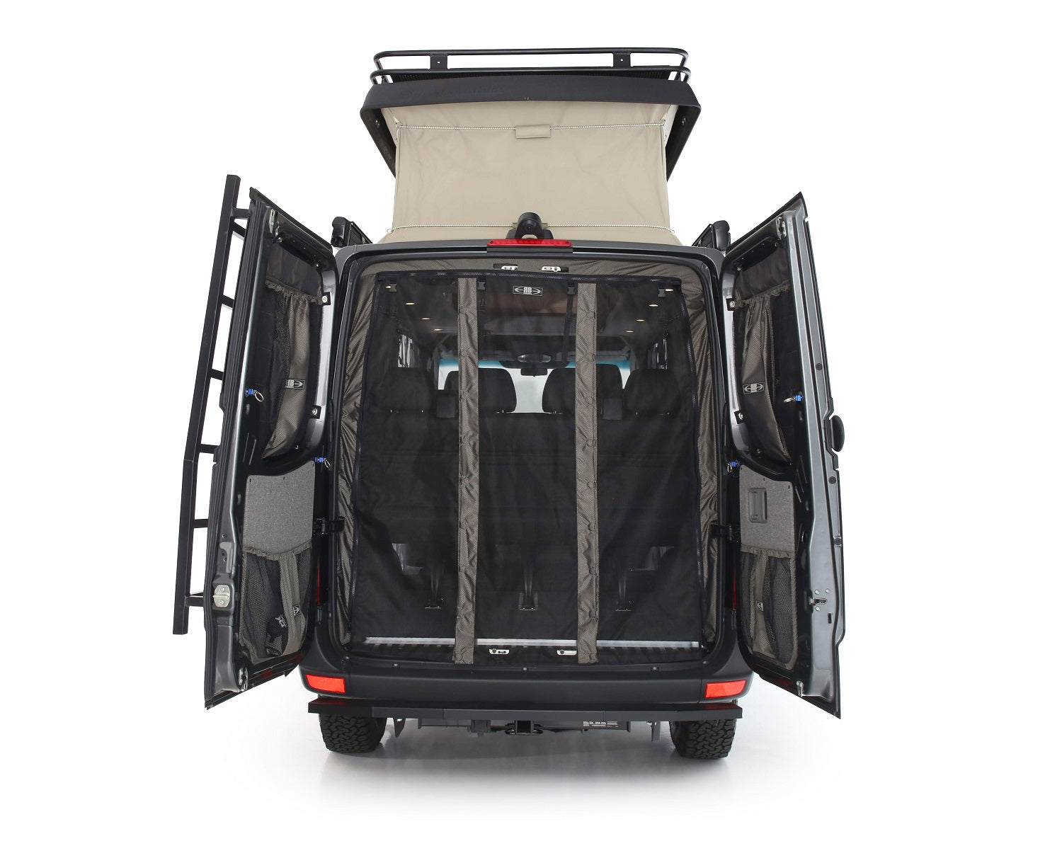 The RB Components Rear Door Bug Net allows the fresh air in and keeps the bugs out. Made from durable sail cloth and heavy duty zippers this bug net screen is built to last. No unzipping to get in and out. Simply walk through the center and the magnetic strips keep the screen closed after passing through. A must have for the Sprinter Adventure Vans.