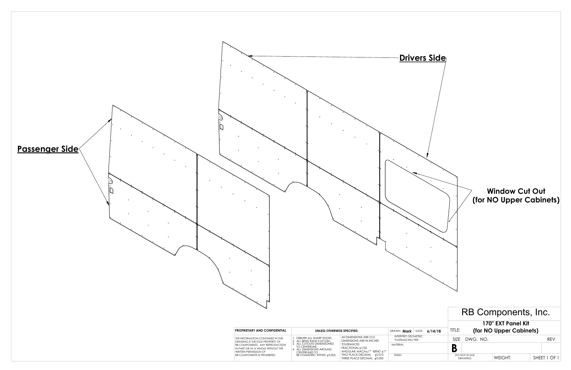 2007 + Sprinter Van Wall Liner Kit, 170″EXT, Plywood (no upper cabinets)