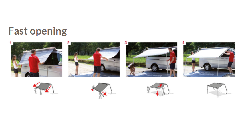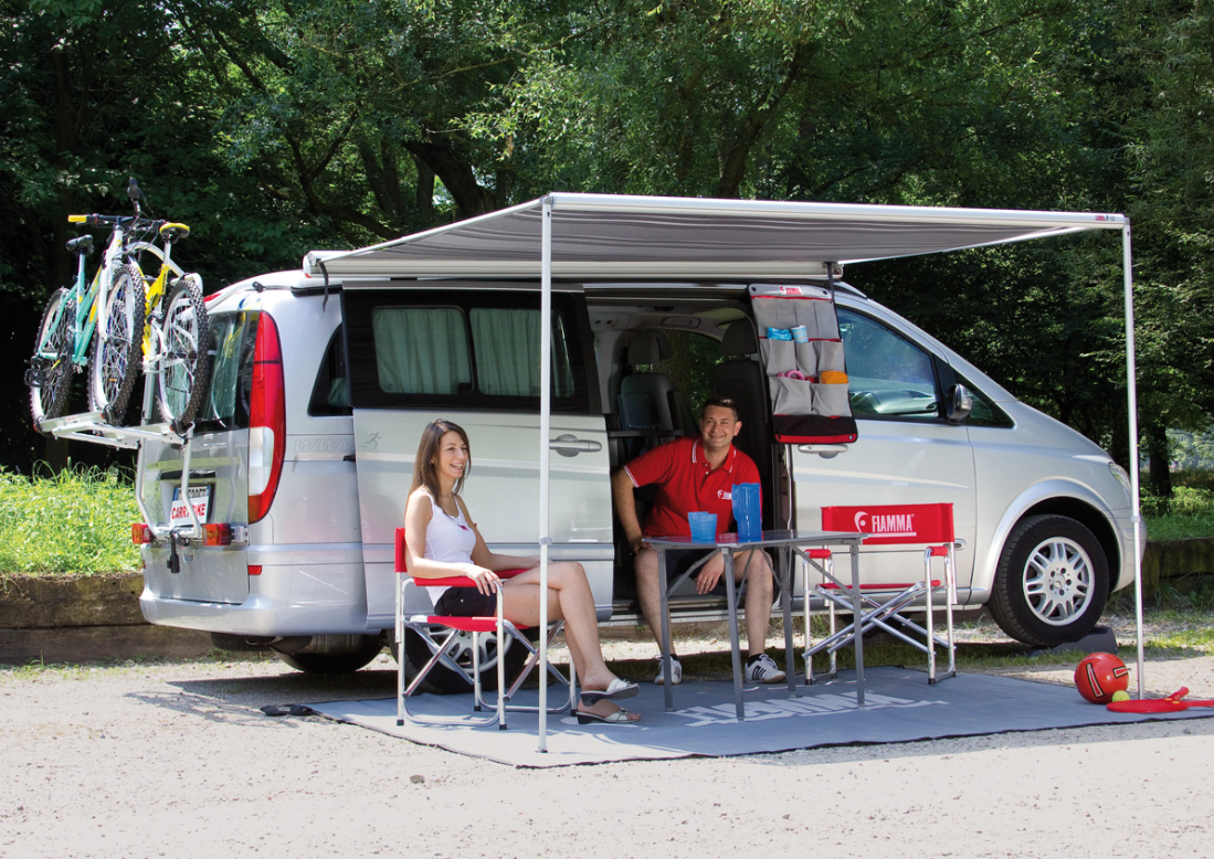 Fiamma F35 is the practical awning with manual mechanism and telescopic legs integrated into the roller tube. It can be installed on any kind of minivan thanks to a variety of brackets that can be fixed on the wall or on roof bars and rails. The installation and the removal from the roof-rack is very quick thanks to the optional mounting kit which doesn’t require drilling.