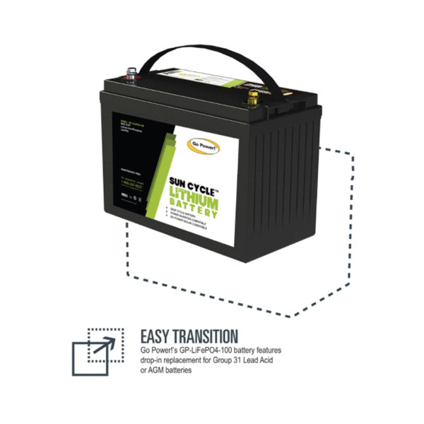 Go further off-the-grid with the new Go Power! 100ah Lithium Iron Phosphate solar battery. Built specifically for mobile applications, this deep cycle battery is ideal for life on the road.