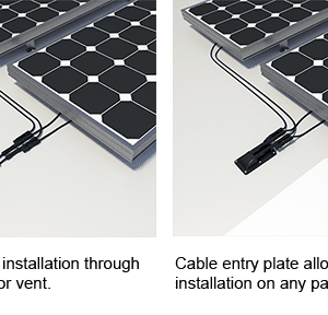 With the Cable Entry Plate, installation is cleaner and more flexible. The Go Power! Cable Entry Plate provides a tidy wire configuration for rooftop solar installation, protects the cable connections and helps prevent roof leaks.