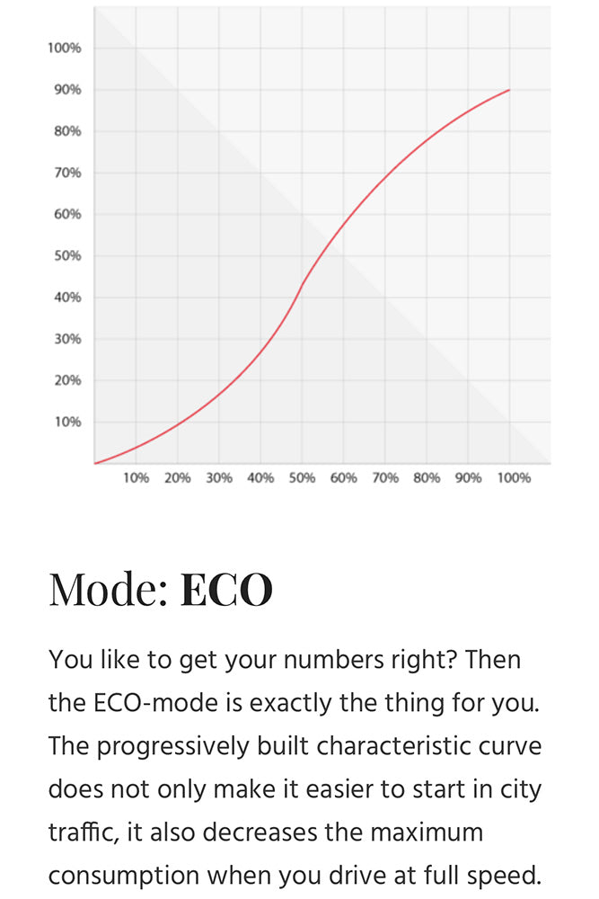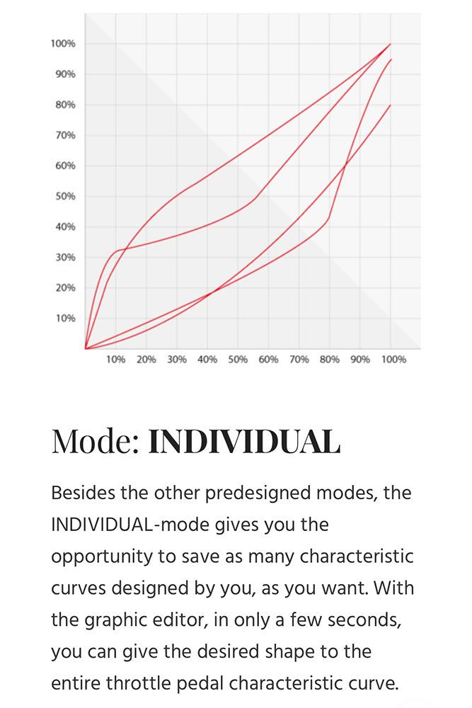 INDIVIDUAL – build your own throttle response curve by defining a custom profile in the included app.