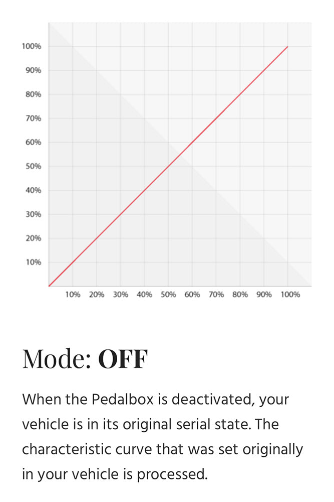 The Pedal Control combines advanced Bluetooth interface with the proven benefits of the original PedalBox. Correct your annoying throttle lag and inconsistent power delivery with this simple to install product. Pedal Control gives you the freedom to change the throttle characteristics, eliminate hesitation due to the throttle by wire design, and smooth out the delay of the turbo lag.