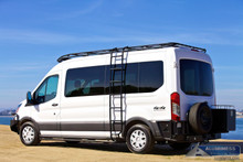 If you have a roof rack, then access to the roof is a must. Our aluminum Side Ladder for the Ford Transit provides quick and easy access to your roof rack without the need to drill through the rear door of your vehicle. Our driver side ladder sits about 5″ away from the van, which gives you ample space to climb, but is tight enough to the body of your Transit to easily avoid any obstacles.