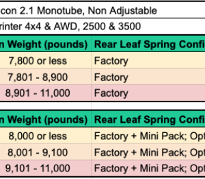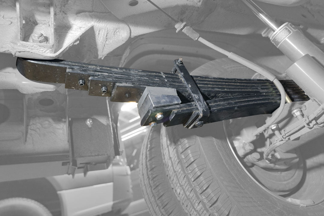 The Opti-Rate leaf spring pack offers flexibility for different van weights, restores lost ride height and corrects sag. Typically, 1.25″ of rear lift is seen, resulting in a nicely leveled stance.