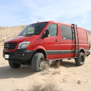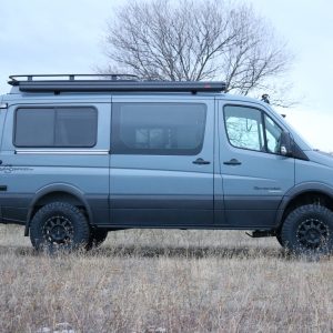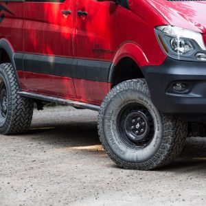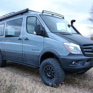 The Van Compass Striker 4×4 lift kit creates the clearance needed to fit larger tires and push deeper into back country landscapes with confidence in the increased capability. Through hours of careful development and design, we’ve created a system that lifts the van with as few compromises to the original design parameters of the vehicle as possible. Using a mix of machined and welded spacers, we move the front subframe to allow for the CVs, tie rods, and control arms to all cycle in their original geometry range set by Mercedes. At the rear, a taller version of our Mini Leaf Spring pack is paired with longer sway bar links, shock relocation brackets, and bump stop spacers to ensure that nothing binds, over-extends, or can over-compression on axle articulation. With proper wheel offset and fender trimming, fitment of a 35 x 12.50 tire is possible, for a huge increase in traction and ground clearance.
