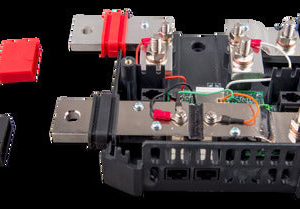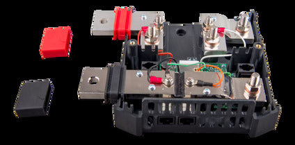 The Lynx Shunt VE.Can is an intelligent 1000A shunt with location for a fuse (not included), the built-in battery monitor accurately monitors the state of charge of your battery. Use a GX device (such as the Cerbo GX) for reading out the information. Part of the modular Lynx distribution system.